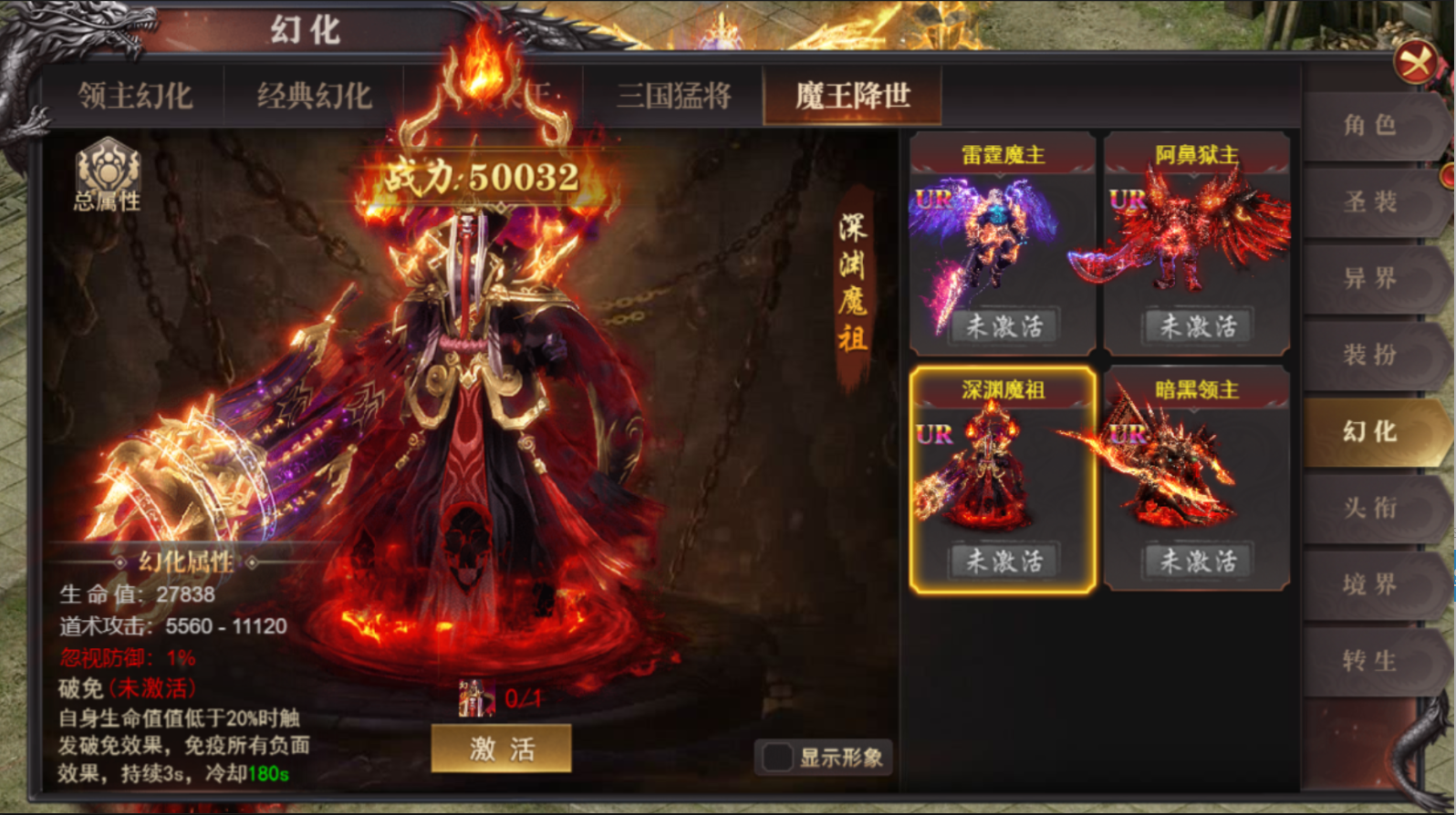 3.幻化分为5个类型,领主幻化,经典幻化,四大天王,三国猛将,天魔现世