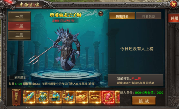 c. 每天17点30会刷新秘境BOSS,可以通过东海之滨每一层的传送门进入东海秘境,挑战秘境BOSS;