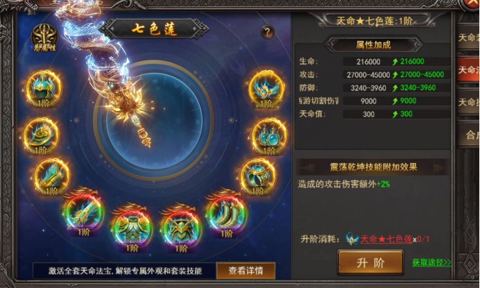 b. 每件法宝都有特殊效果,会增强天命技能震荡乾坤效果,天命法宝阶数越高,增强效果越强;