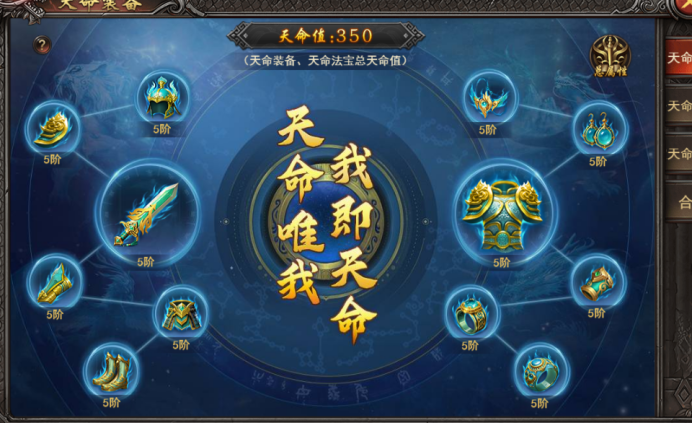a. 穿戴全套5阶及以上天命装备,可激活套装属性,等级越高,属性越高;