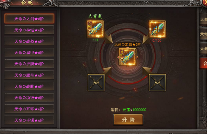 4. 新增玩法--天命合成:5阶以上天命装备可通过使用材料合成高阶,5阶以下只能回收;
