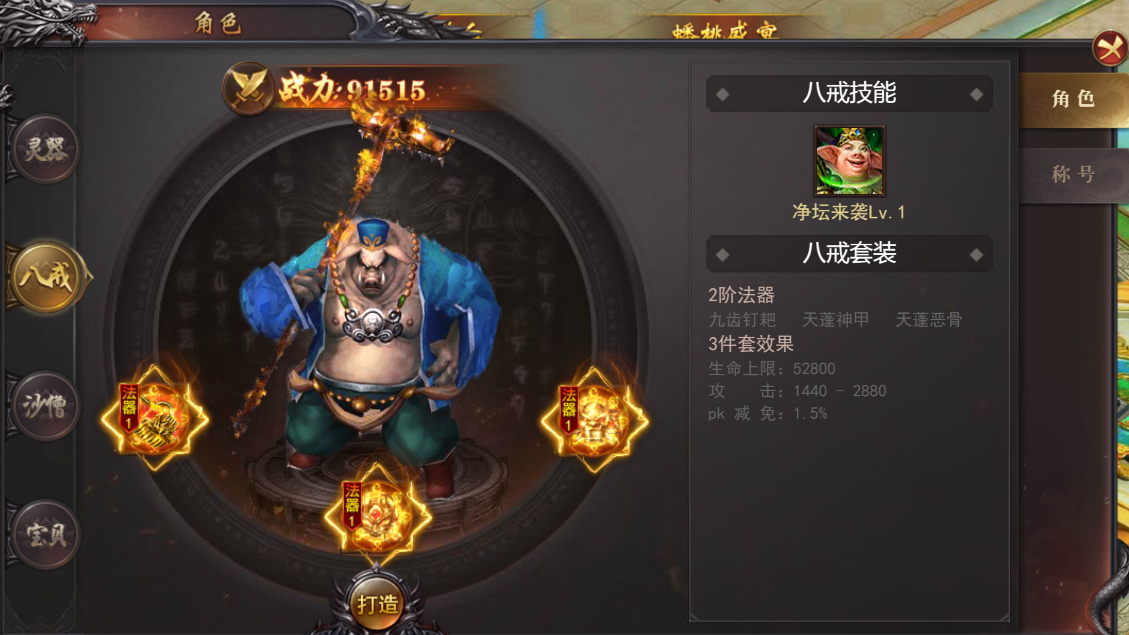 (3)八戒:穿戴三件八戒法器即可激活专属技能-净坛来袭