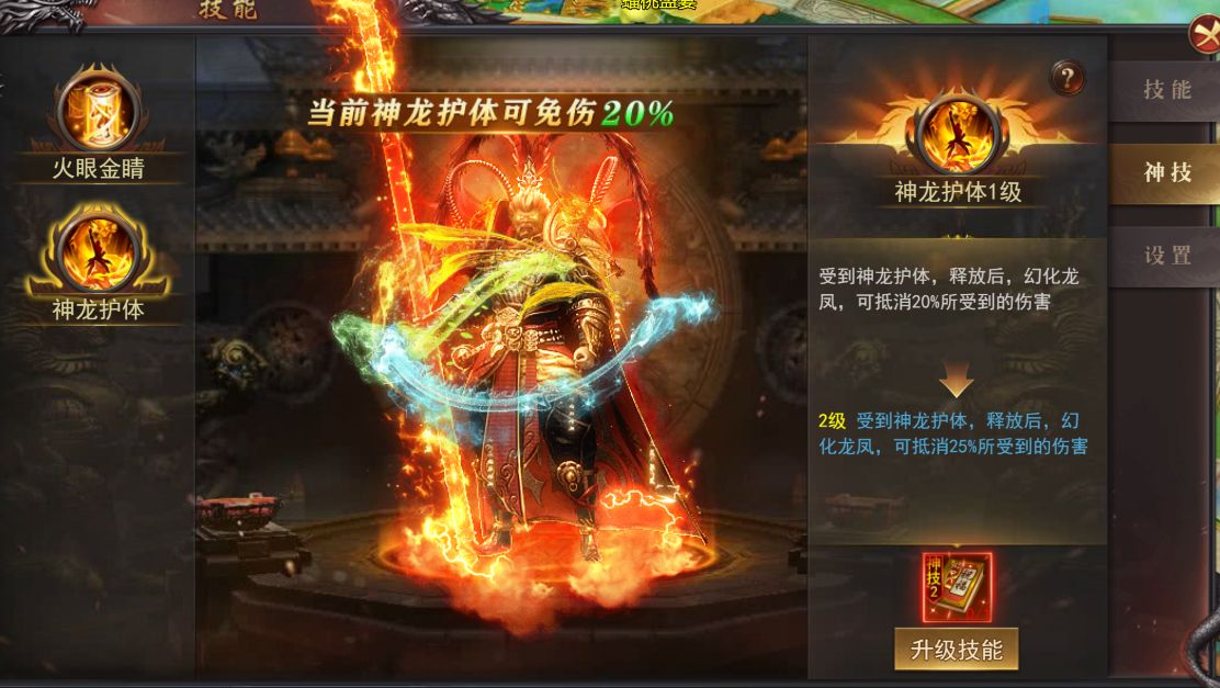 2.学习技能的玩家可以受到神龙祝福,释放技能,可以减免受到的伤害