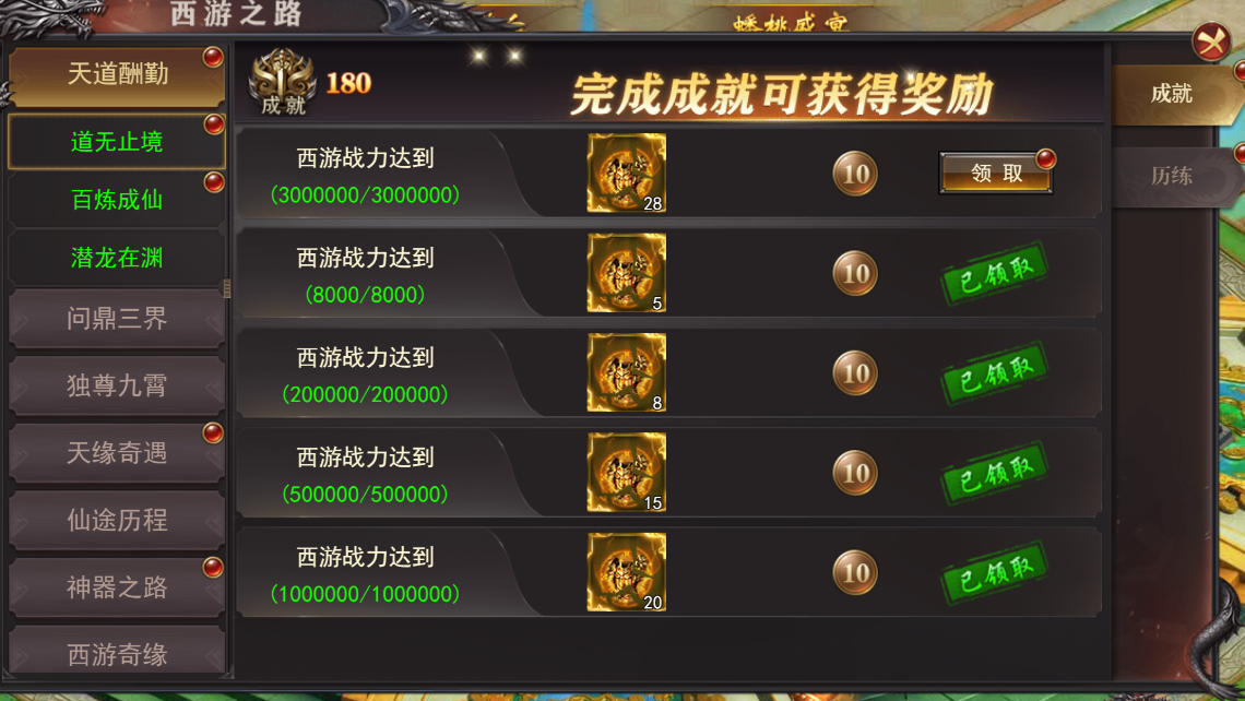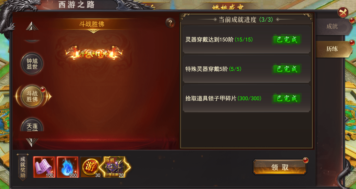 (1)完成西游大陆的成就可获得奖励