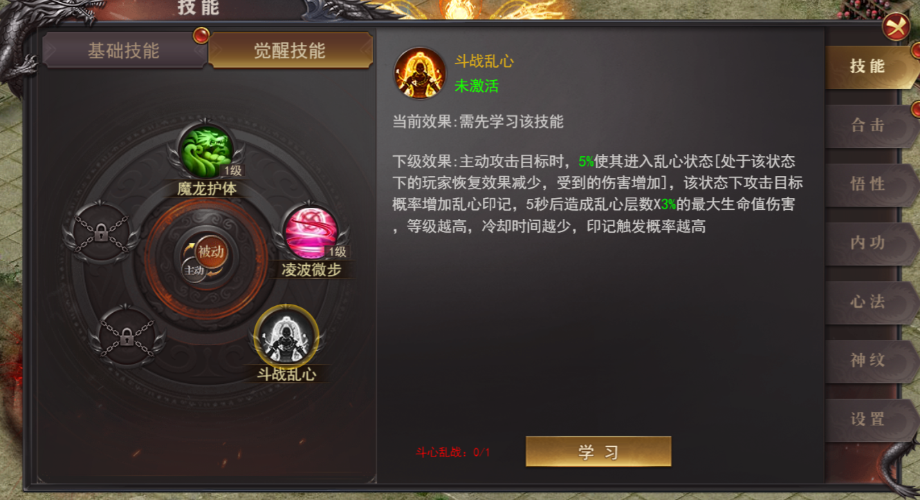 新增被动觉醒神技(斗战乱心)